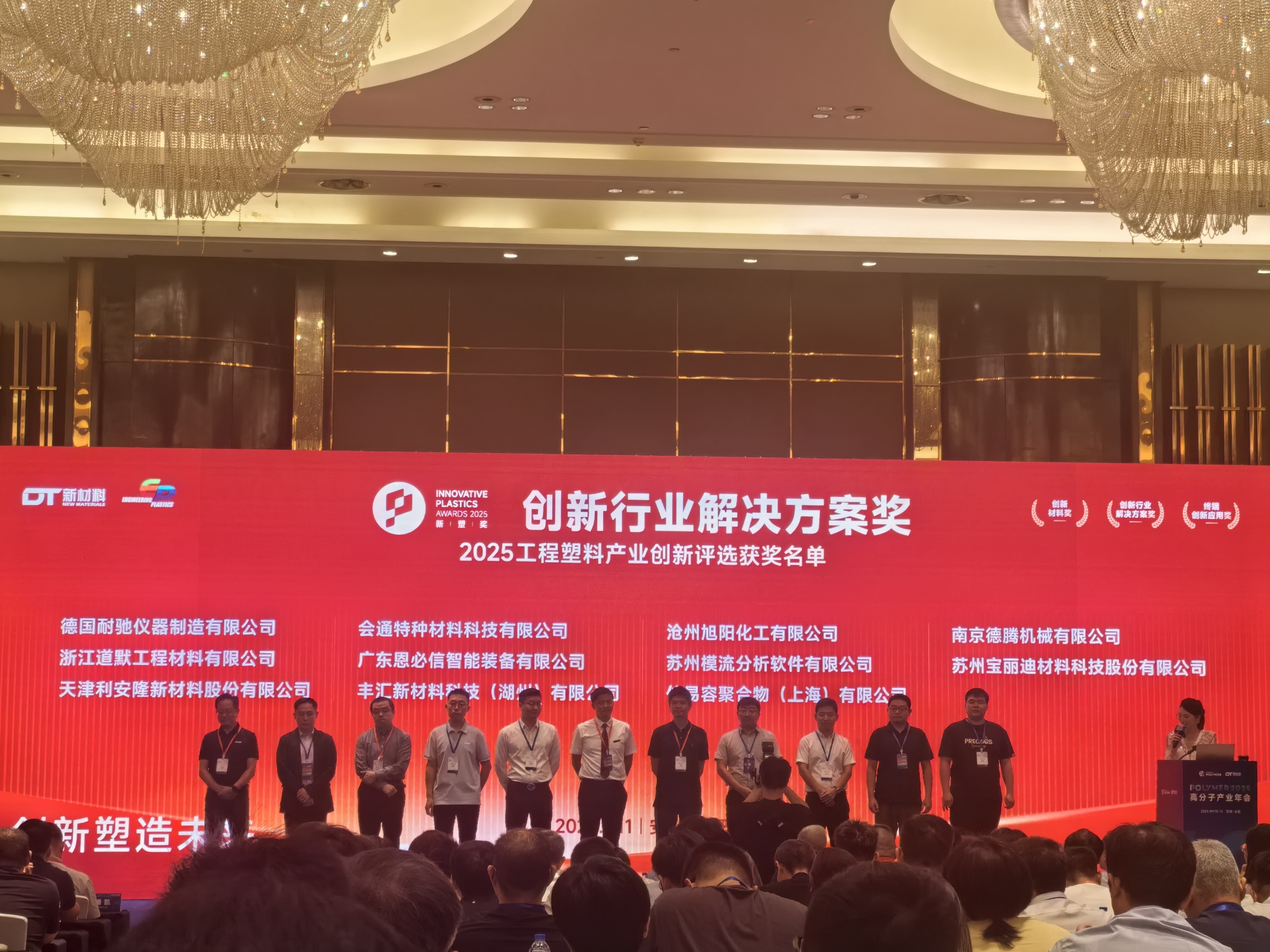 On September 11, 2025, Fine-Blend Polymers was awarded the "Innovative Industry Solutions Award" at the 2025 High Polymer Industry Annual Conference hosted by DT New Materials in Hefei. This honor is not only a high recognition of Fine-Blend's past achievements but also a great expectation for its future development.