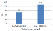 Fig.2 The effect of CMG5804 on the impact properties of HDPE+30% GF system