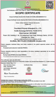 At this memorable moment, Fine-Blend is honored to have received the Global Recycling Standard (GRS) certificate. This recognition affirms our efforts in sustainable practices and environmentally friendly manufacturing.